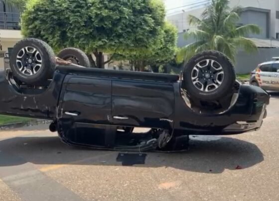 Caminhonete x Picape: mais um capotamento em cruzamento perigoso de Sinop