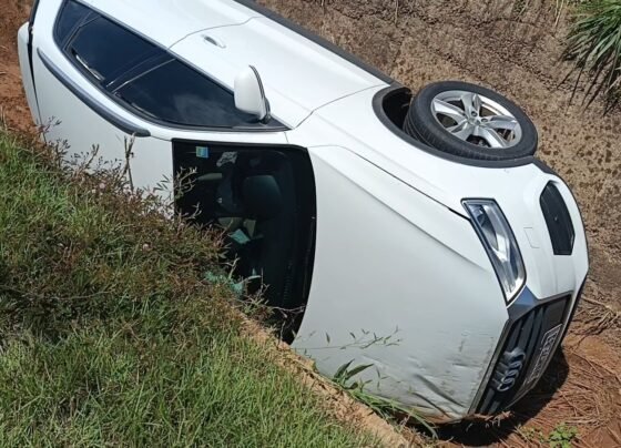 Motorista desvia de picape e cai dentro de valetão em Sinop
