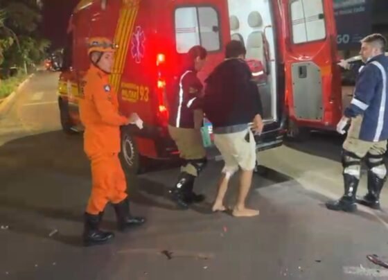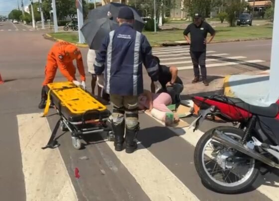 Moto x moto: batida em semáforo de Sinop deixa mulher hospitalizada