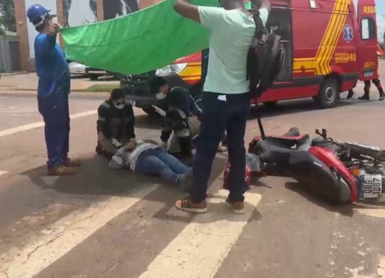 Carro x moto: colisão deixa motoqueira com ferimentos em Sinop