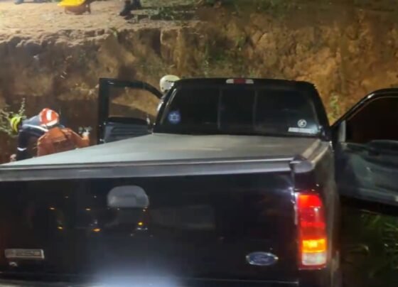 Homem e mulher são hospitalizados após caminhonete cair em valetão