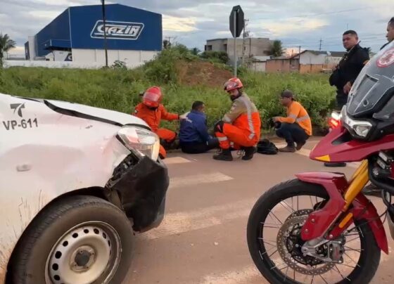 Carro x moto: motoqueiro desrespeita sinal e sofre fratura em acidente