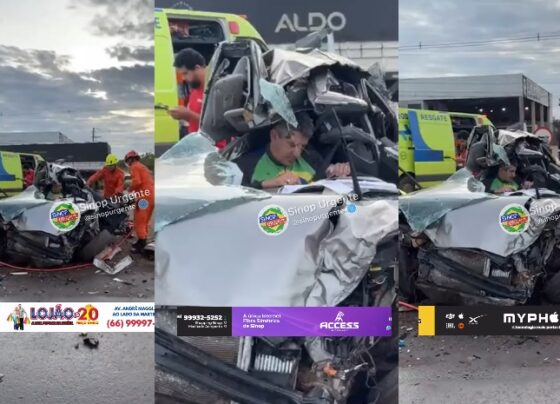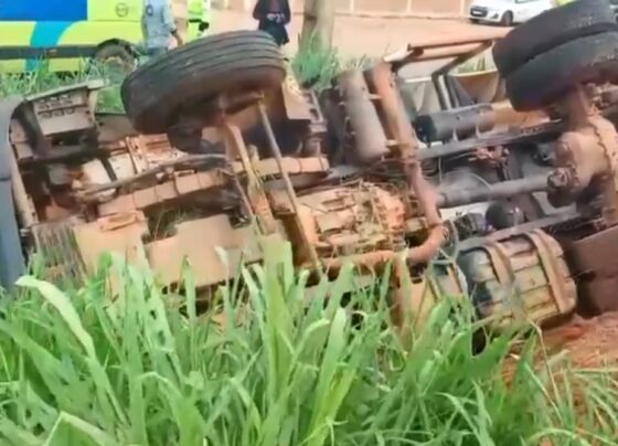 Na BR-163, em Sinop, nesta quarta-feira (4), um caminhão basculante seguia pela rodovia sentido ao Centro, quando em um trevo,…