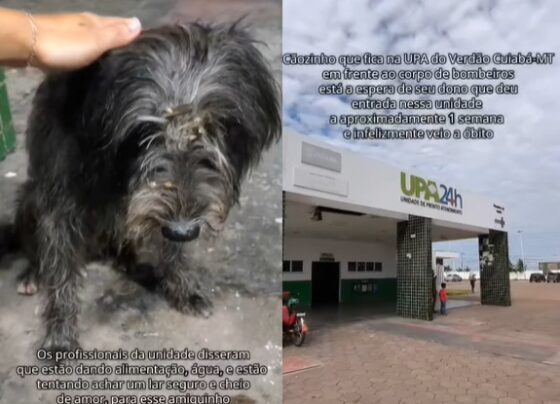Cachorro espera por tutor que morreu em frente a UPA em Cuiabá