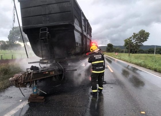 Corpo de Bombeiros combate incêndio em carreta na BR-070