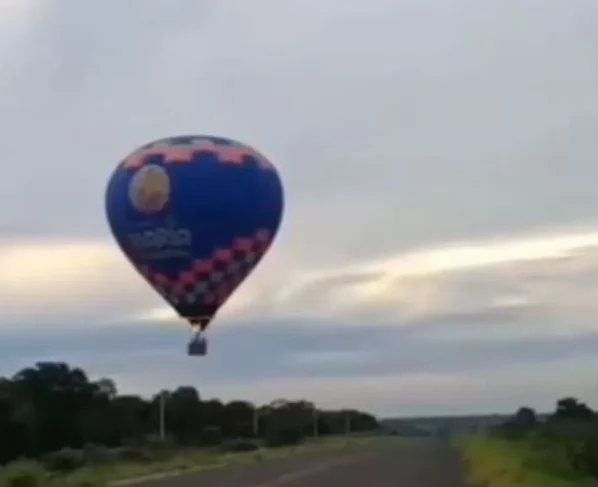 Um balão pousou às margens de uma rodovia em Aquidauana e impressionou quem passava pelo local. Vídeo gravado por um motorista mostra o momento da descida, no mesmo momento em que uma carreta transitava pela pista.