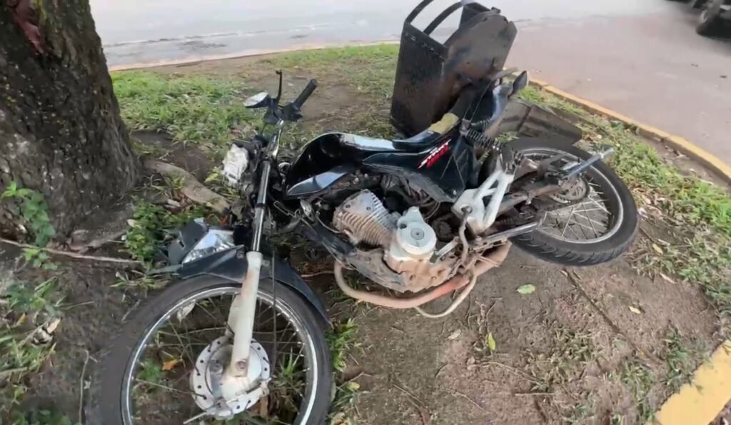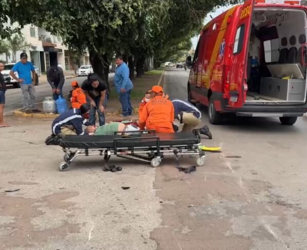 Um grave acidente entre moto e bicicleta foi registrado nesta quarta-feira (29), na avenida das Figueiras com rua das Violetas.