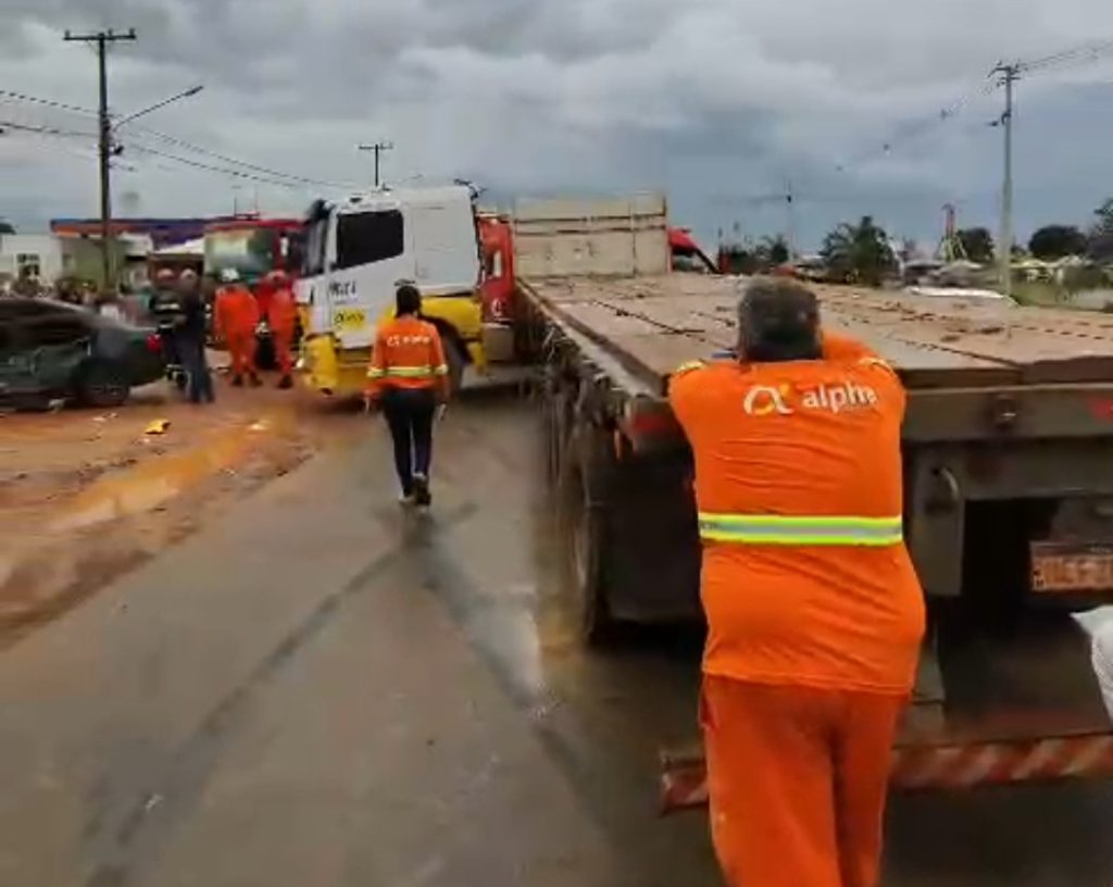 No local, a equipe do 4º Batalhão Bombeiro Militar (4º BBM) constatou que a colisão principal ocorreu entre o veículo de carga e um carro de passeio que, com o impacto, acabou atingindo outro carro menor estacionado às margens da via.