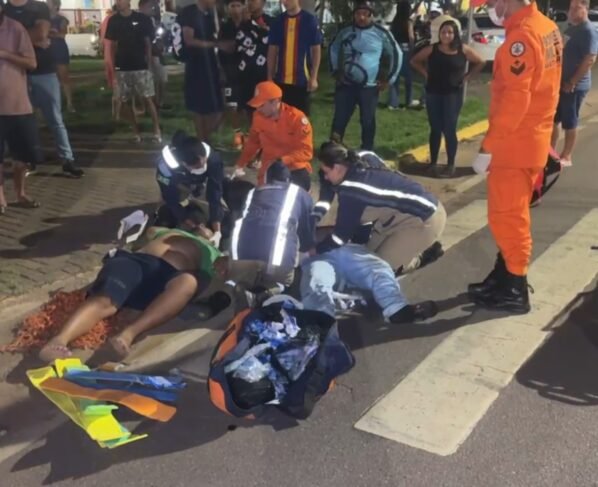 Na colisão forte, a parte da frente da moto Honda Bros teria atingido a lateral do veículo Ford Fiesta. A moto vinha da Tarumãs e o carro saiu da Sibipirunas. Um das vítimas, um rapaz, ficou um pouco zonzo, com algumas escoriações, mas adentrou caminhando a unidade de resgate. A outra vítima foi imobilizada, com suspeita de fratura na perna.
