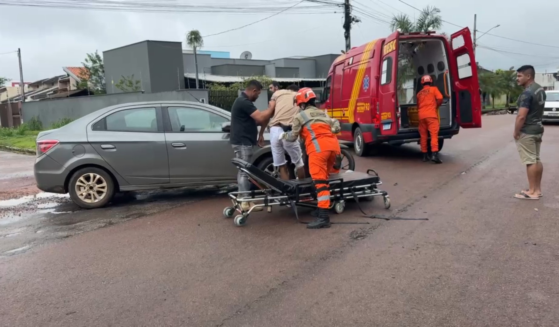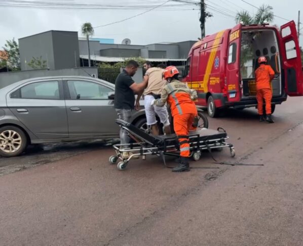 Carro x moto: motociclista é arremessado em colisão