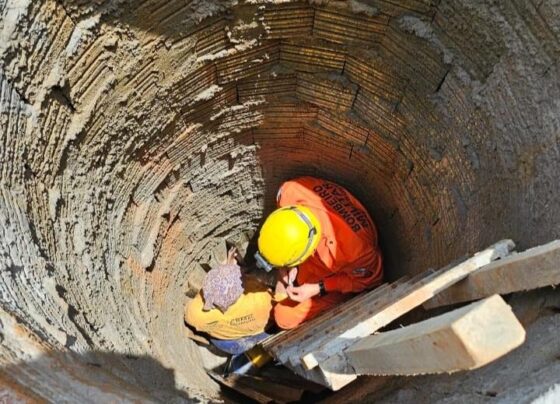 Bombeiros resgatam trabalhadora que caiu em poço de 4,5 metros
