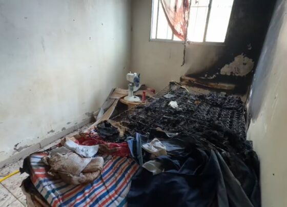 O quarto de uma casa na rua Tuiuiú, bairro Recanto dos Pássaros, pegou fogo nesta quinta-feira (15) em Sinop. Cama…
