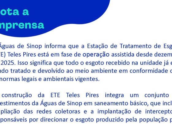 Após a publicação de nossa reportagem sobre a paralisação da Estação de Tratamento de Esgoto (ETE) Teles Pires e…