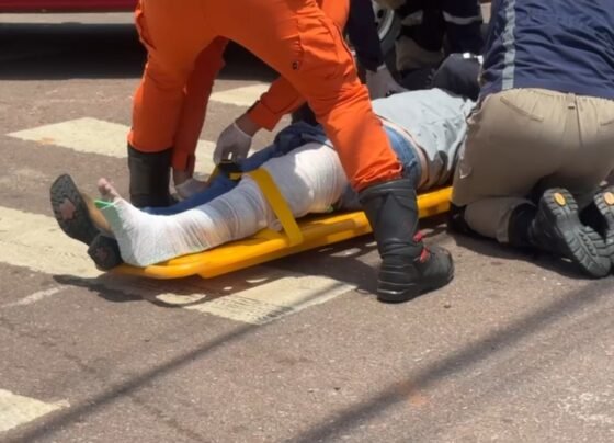 Picape x moto: acidente deixa motociclista com perna fraturada em Sinop