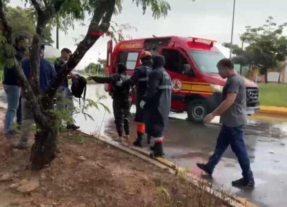 Moto aquaplana em Sinop e mulher é socorrida pelos bombeiros