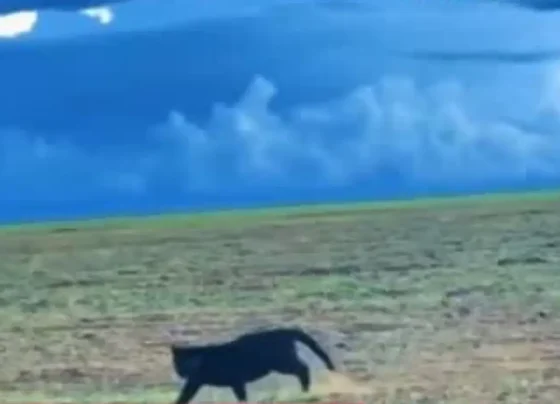 Uma onça-pintada de cor preta foi flagrada correndo ao lado de um carro, em uma fazenda localizada na zona rural…