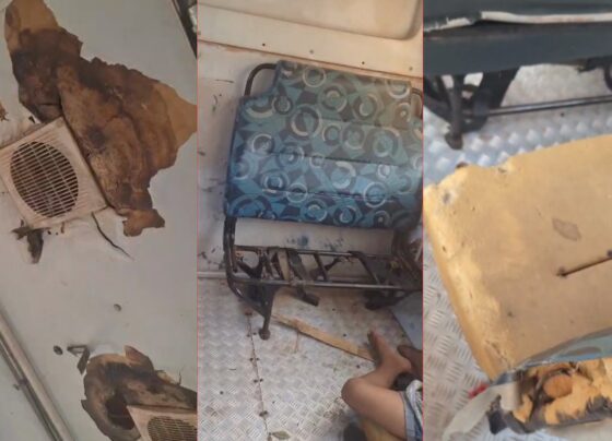 Alunos são transportados em ônibus escolar com bancos rasgados em Barra do Bugres