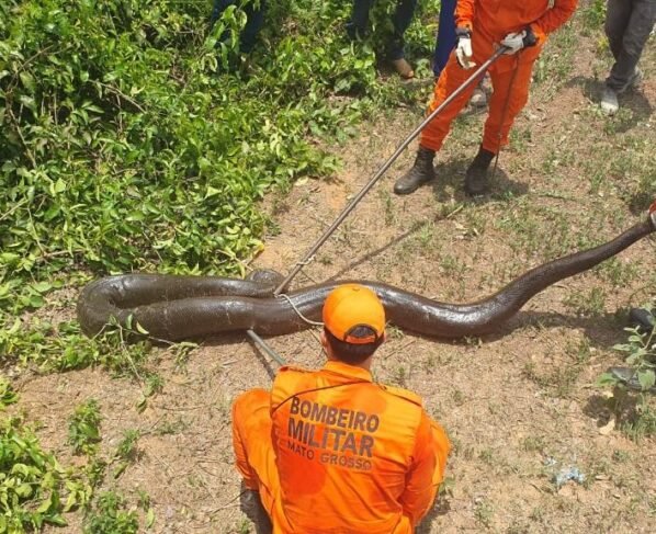 O Corpo de Bombeiros Militar de Mato Grosso (CBMMT) resgatou, nesta terça-feira (28.10), uma sucuri que estava em uma área de mata dentro do perímetro urbano de Sorriso (a 398 km de Cuiabá). Apesar de não apresentar risco à população, o resgate foi realizado para evitar possíveis incidentes provocados pela aproximação de curiosos e também garantir a segurança da serpente.