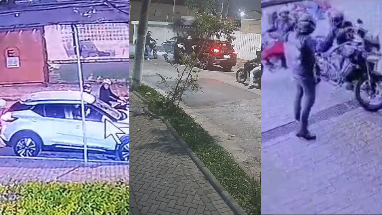 Eles estavam em três motos diferentes, e a ação durou cerca de um minuto. A Polícia Militar foi acionada e segue em busca dos suspeitos.