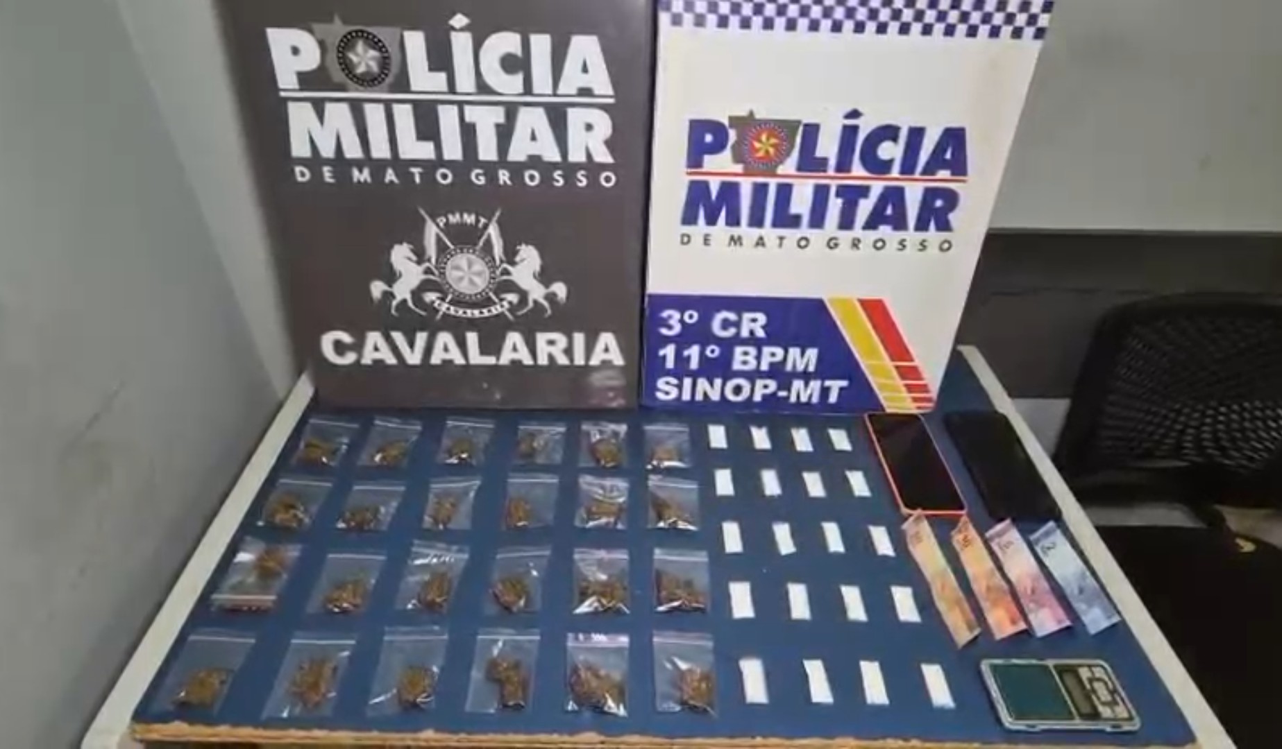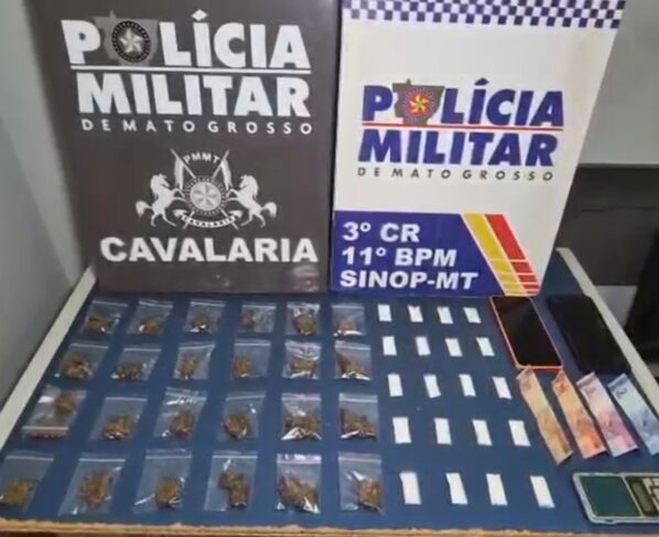 Um suspeito de tráfico de drogas foi preso nesta quinta-feira à noite (29) no bairro Vila Santana, em Sinop, com mais de 10 invólucros de cocaína e 25 de maconha.