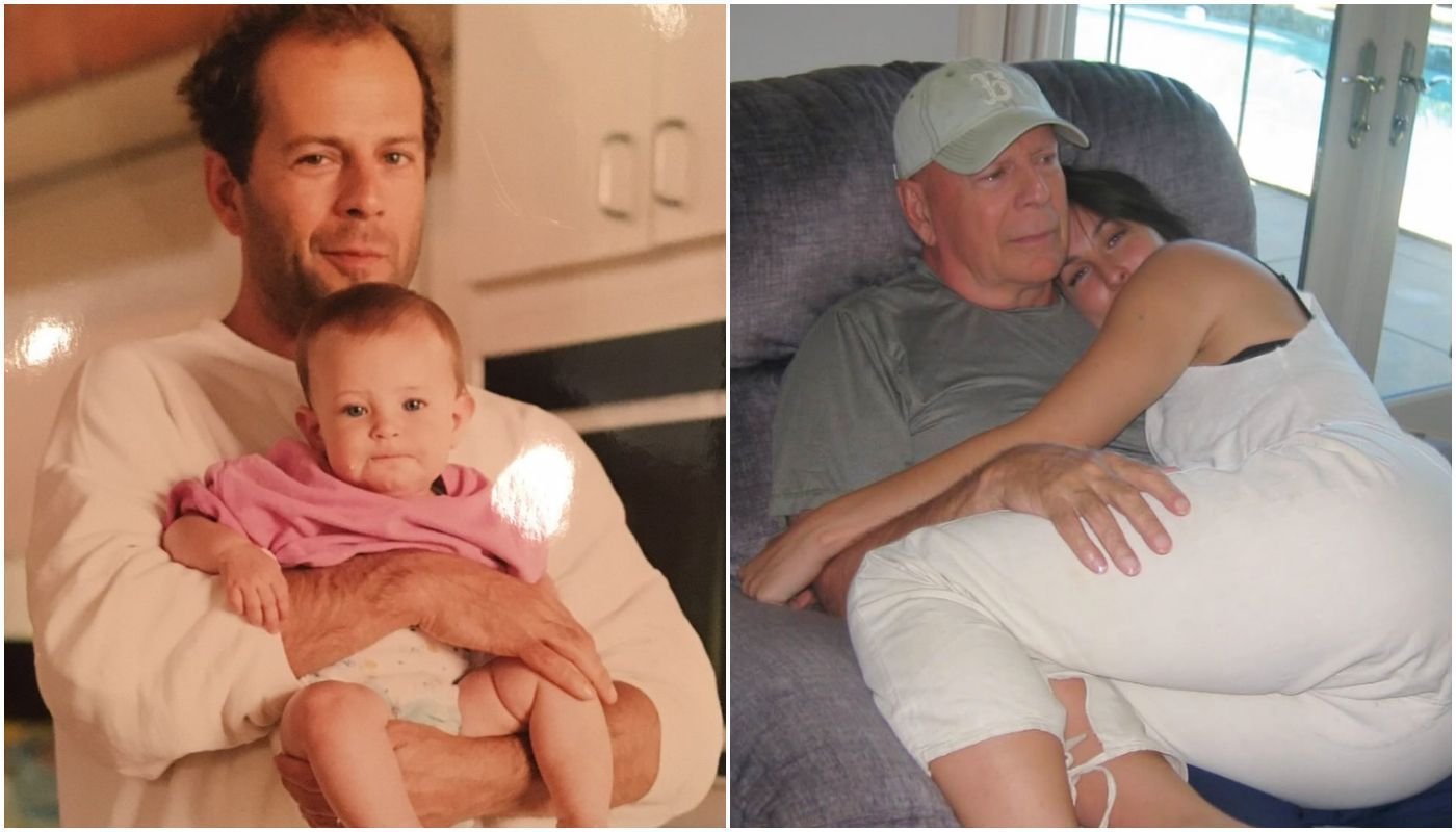 A filha de Willis publicou duas fotos ao lado do pai em comemoração ao aniversário dele e, em um antes e depois, ela apareceu no colo do ator, um registro de quando era bebê e outro já adulta.