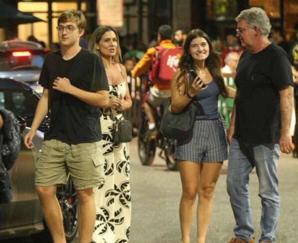 Joaquim Huck, 20, filho dos apresentadores Angélica, 51, e Luciano Huck, 54, foi flagrado ao lado da namorada, Manoela Esteves, 19, e dos sogros, deixando um restaurante no Leblon, Rio de Janeiro, neste sábado (20).