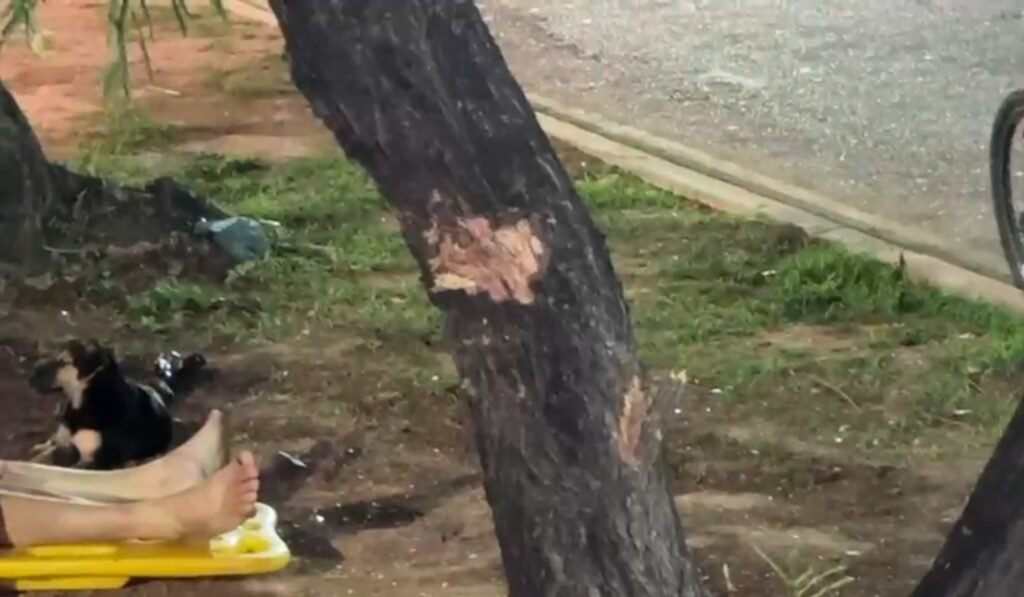 O condutor ficou com a face bem machucada. Ele teria caído, sozinho, na avenida dos Pinheiros já quase chegando na André Maggi e, aparentemente, o quadro clínico dele é bem grave. A árvore ficou com marcas e a motocicleta foi levantada por alguns populares, que relataram que ele já tinha sofrido uma outra queda.