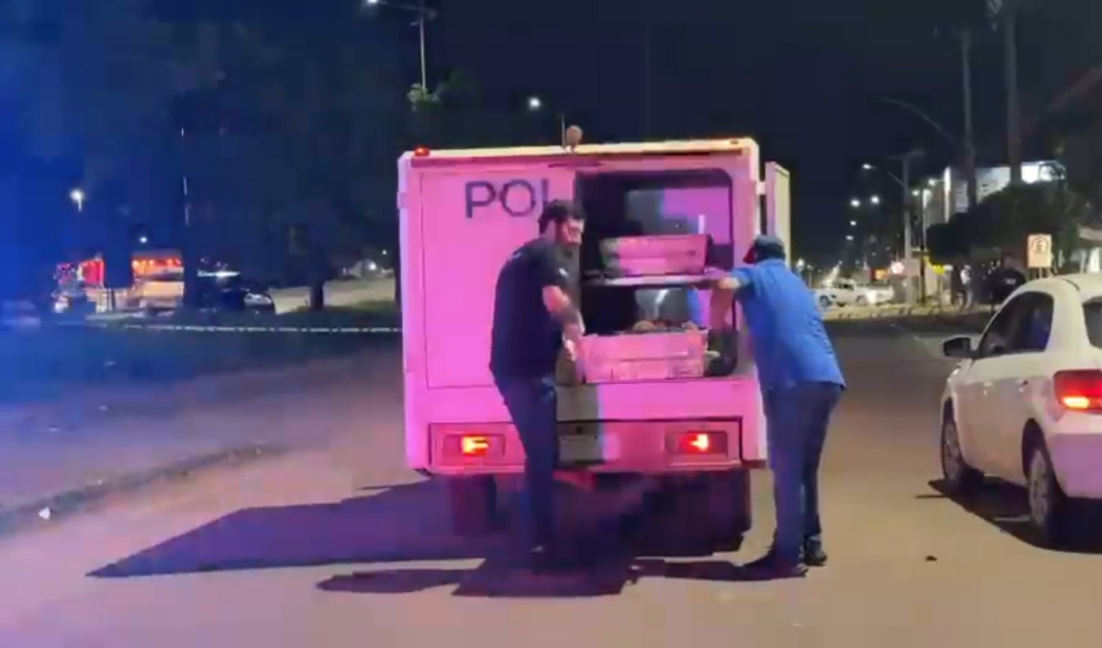 O tenente Fernando, da Polícia Militar, deu detalhes sobre a ocorrência. “Recebemos a informação via 190 que teria um acidente de trânsito e com pessoas em óbito no local. Deslocamos e aqui constatamos que se tratava de uma situação com disparo de arma de fogo. Então, as informações preliminar que nós temos é que um cidadão foi baleado na região da chácara São Cristóvão e estava sendo socorrido e veio um veículo fazendo esse acompanhamento atrás deles, correndo atrás de um encalço deles e que chegando aqui teria realizado mais disparos”, disse.