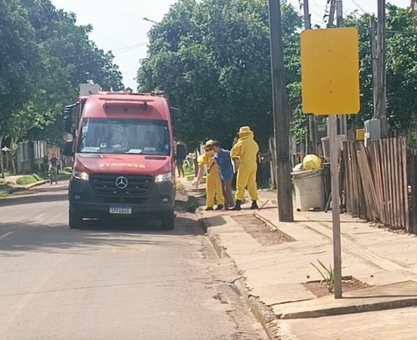 O Corpo de Bombeiros atendeu na tarde desta terça-feira (4) um homem no bairro Bom Jardim, após ser atacado por um enxame de abelhas.