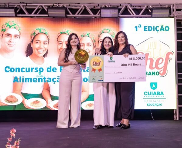 A técnica em nutrição escolar (TNE-merendeira), Regiane Marques Nogueira Melo, foi eleita na sexta-feira (24) a grande vencedora da 1º edição do Chef Cuiabano. A solenidade de premiação ocorreu no Hotel Fazenda Mato Grosso no período noturno.