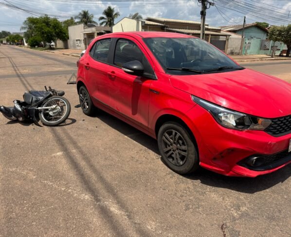 No Jardim Imperial, cruzamento das Margaridas com Açaís, outro acidente entre carro e moto nesta segunda-feira (27). A equipe do Corpo de Bombeiros foi ao local para fazer o atendimento. Uma colisão entre o veículo Argo de cor vermelha e a motocicleta Honda Abyss que ficou bem danificada.