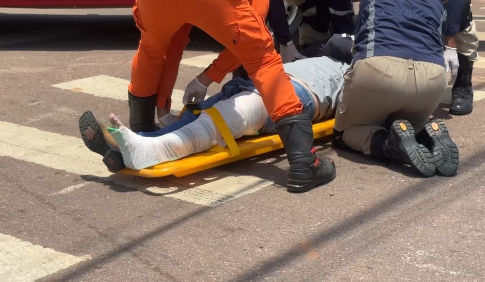 Picape x moto: acidente deixa motociclista com perna fraturada em Sinop