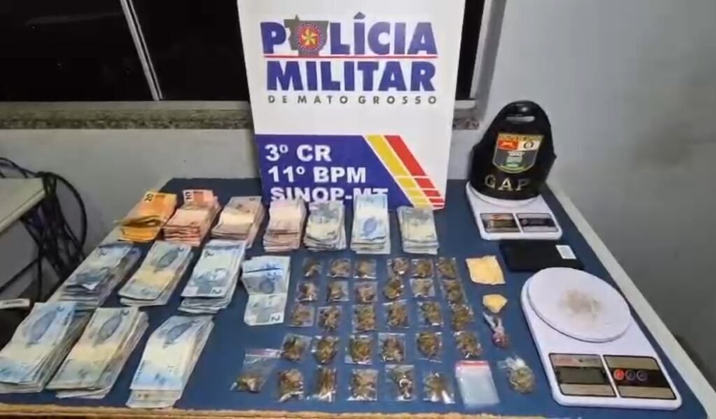 Na residência, foi encontrado também drogas e dinheiro. e em conversa com os policiais, o indivíduo preso, ele acabou relatando, inclusive, que teria feito isso porque ele já tinha uma dívida com a organização criminosa. Ele disse, então, que ele seria, teria sido obrigado a participar dessa situação e ele deu o apoio nessa questão, sendo então o piloto da motocicleta.