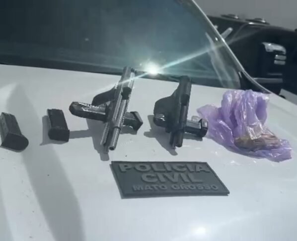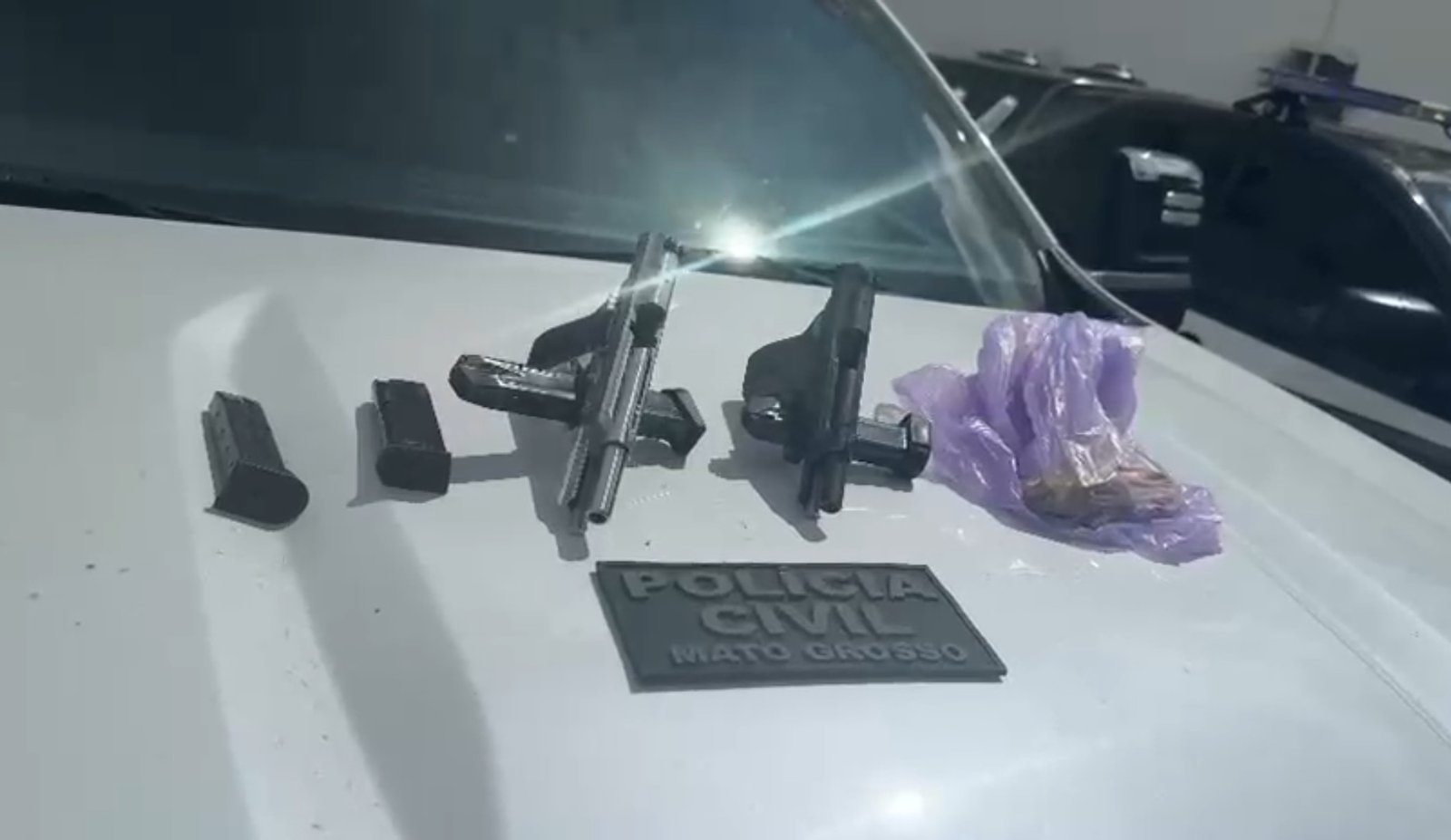 A primeira ação foi realizada no bairro daury Riva, onde a DHPP localizou o suspeito, identificado pelas iniciais M.S.M. Ele estava de posse de duas pistolas, ambas com a numeração raspada,