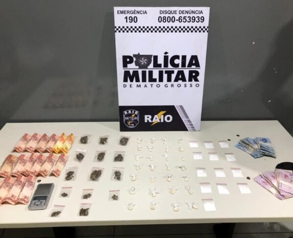 Policiais militares da Companhia Independente de Rondas e Ações Intensivas e Ostensivas (Raio), do 2º Comando Regional, prenderam um homem por tráfico de drogas na noite deste sábado (18.10), em Várzea Grande. Com o suspeito, foram encontradas 55 porções de drogas, entre maconha e pasta base de cocaína.