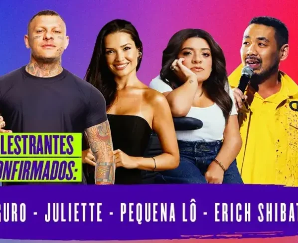 Entre os destaques da programação, estão nomes que se consolidaram pela atuação inovadora em suas áreas. Toguro é influenciador digital e empresário; Juliette, campeã do BBB 2021, construiu carreira como cantora e apresentadora; Pequena Lô é psicóloga, humorista e um dos grandes fenômenos das redes sociais; e Erick Shibata atua como designer e especialista em branding.