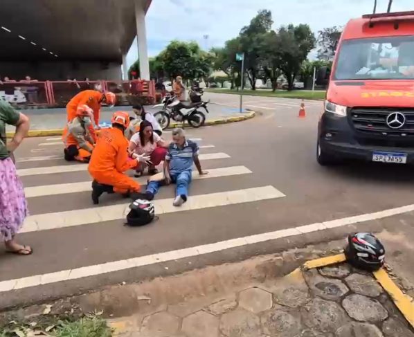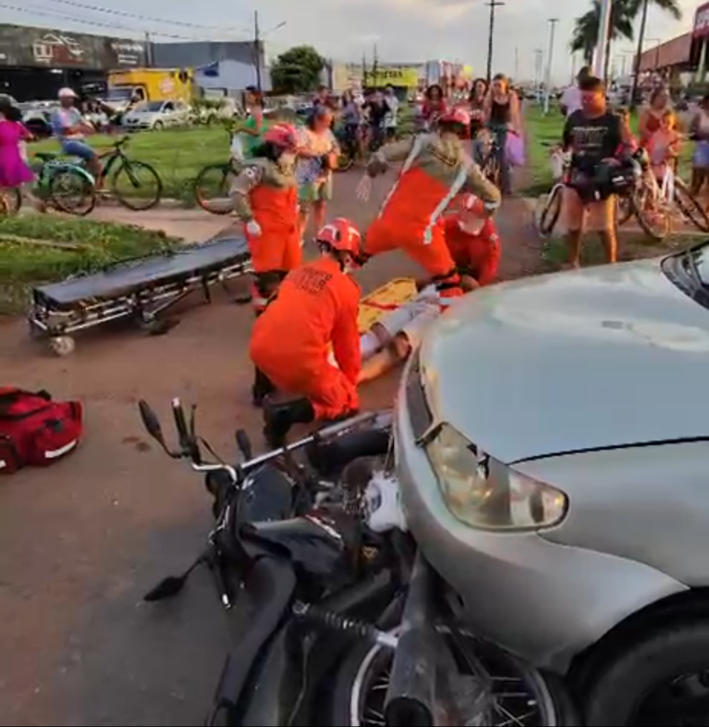 No local, a moto teve a frente cortada pelo carro, que acabou adentrando a rotatória. A PM deve apurar as circunstâncias e, posteriormente, as responsabilidades. O Corpo de Bombeiros prestou os primeiros atendimentos e encaminhou a dupla da moto a uma unidade hospitalar.
