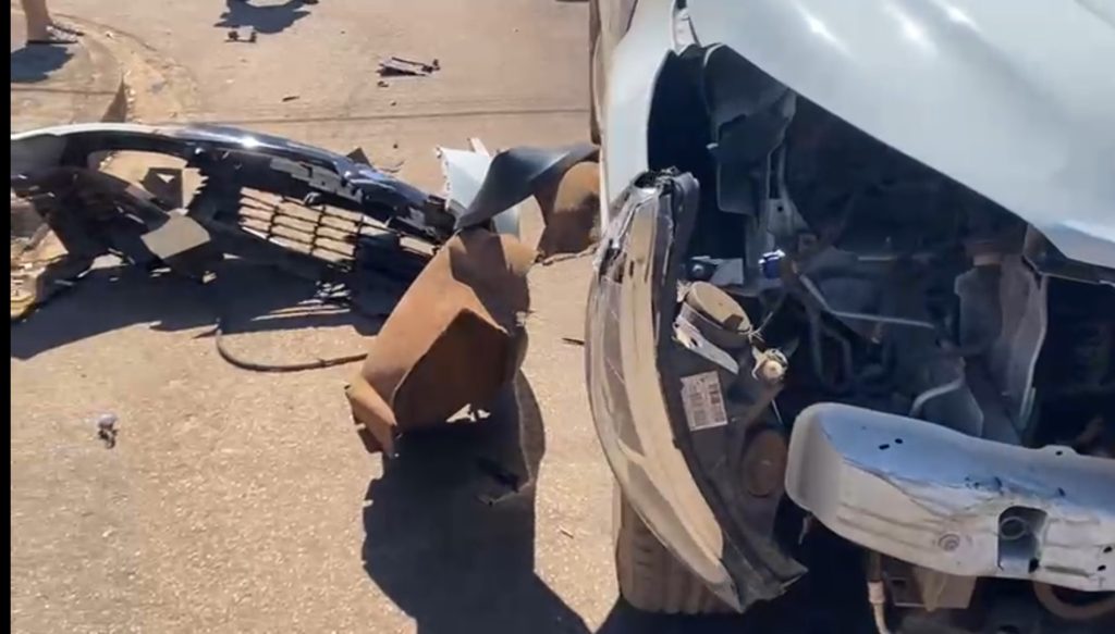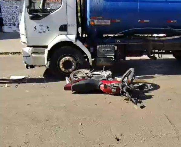 A primeira colisão foi entre uma moto e um caminhão a serviço das Águas de Sinop, na rua das Caviúnas, próximo à avenida das Itaúbas, no último sábado (11). O motorista do caminhão teria desviado de um contêiner de coleta de lixo e de um carro que estaria estacionado e com isso teria invadido a pista da moto.