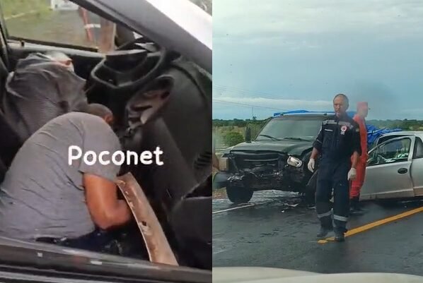 De acordo com informações colhidas no local, o acidente aconteceu durante uma forte chuva que atingia a rodovia no momento do impacto. “A água jogou um veículo contra o outro”, relatou uma das testemunhas.