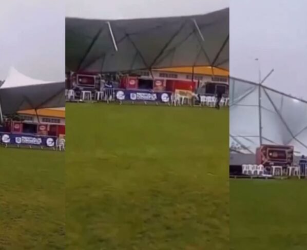 Uma tenda provisória de estrutura metálica montada para um evento de futebol de base voou com a força do vento, neste sábado (18), em Florianópolis (SC). Conforme a Defesa Civil, as rajadas ultrapassaram 70km/h na cidade. Uma pessoa foi atingida e teve ferimentos leves.